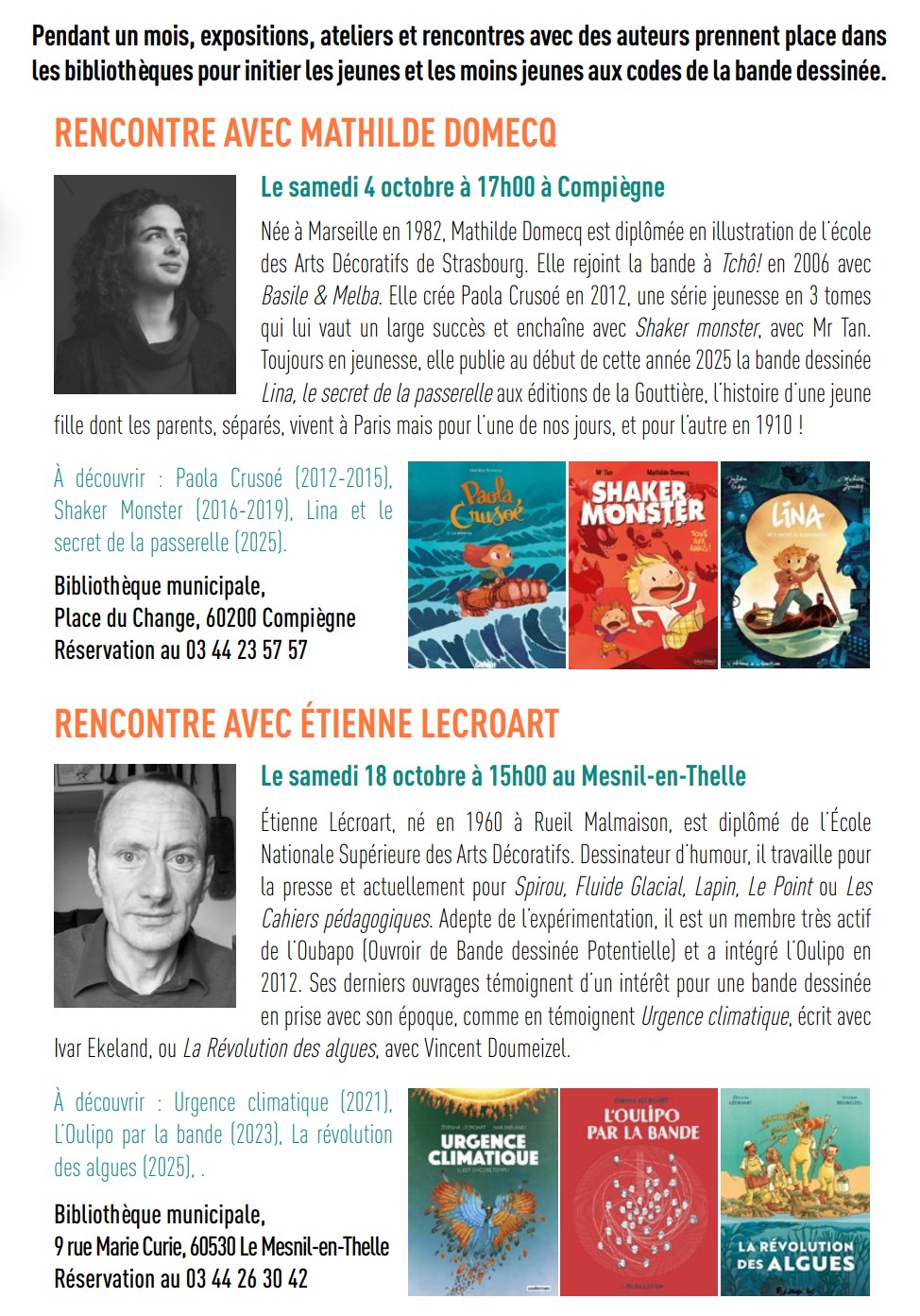 Le Mois de la BD 2025 dans l’Oise : Rencontres avec Mathilde Domecq et Étienne Lécroart